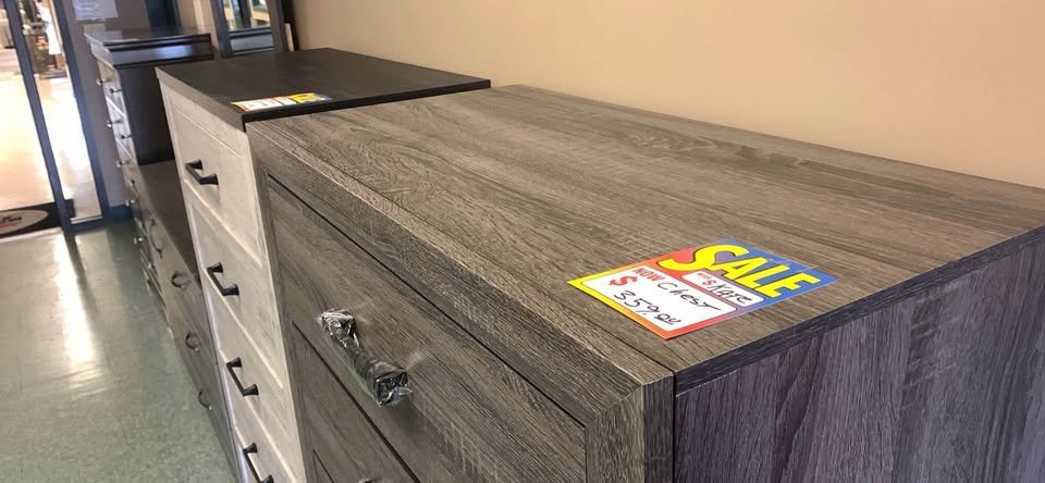 Brand new gray colored distressed style dresser with 5 draws ready for a new home! We are woo town furniture and appliances 60 king street Worcester Ma
